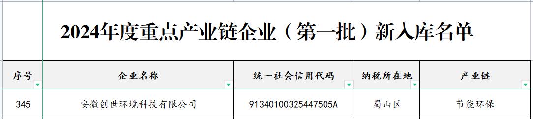 喜報(bào)!創(chuàng)世環(huán)境榮登2024年度合肥重點(diǎn)產(chǎn)業(yè)鏈企業(yè)名錄