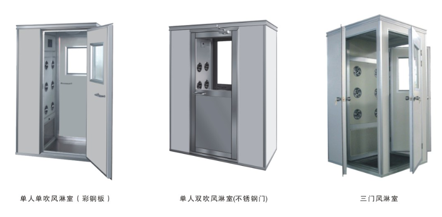 按照規(guī)格可分為:?jiǎn)稳藛未碉L(fēng)淋室,單人雙吹風(fēng)淋室,雙人雙吹風(fēng)淋室等。也可按照需求定制多人多吹、貨淋室、通道風(fēng)淋等。